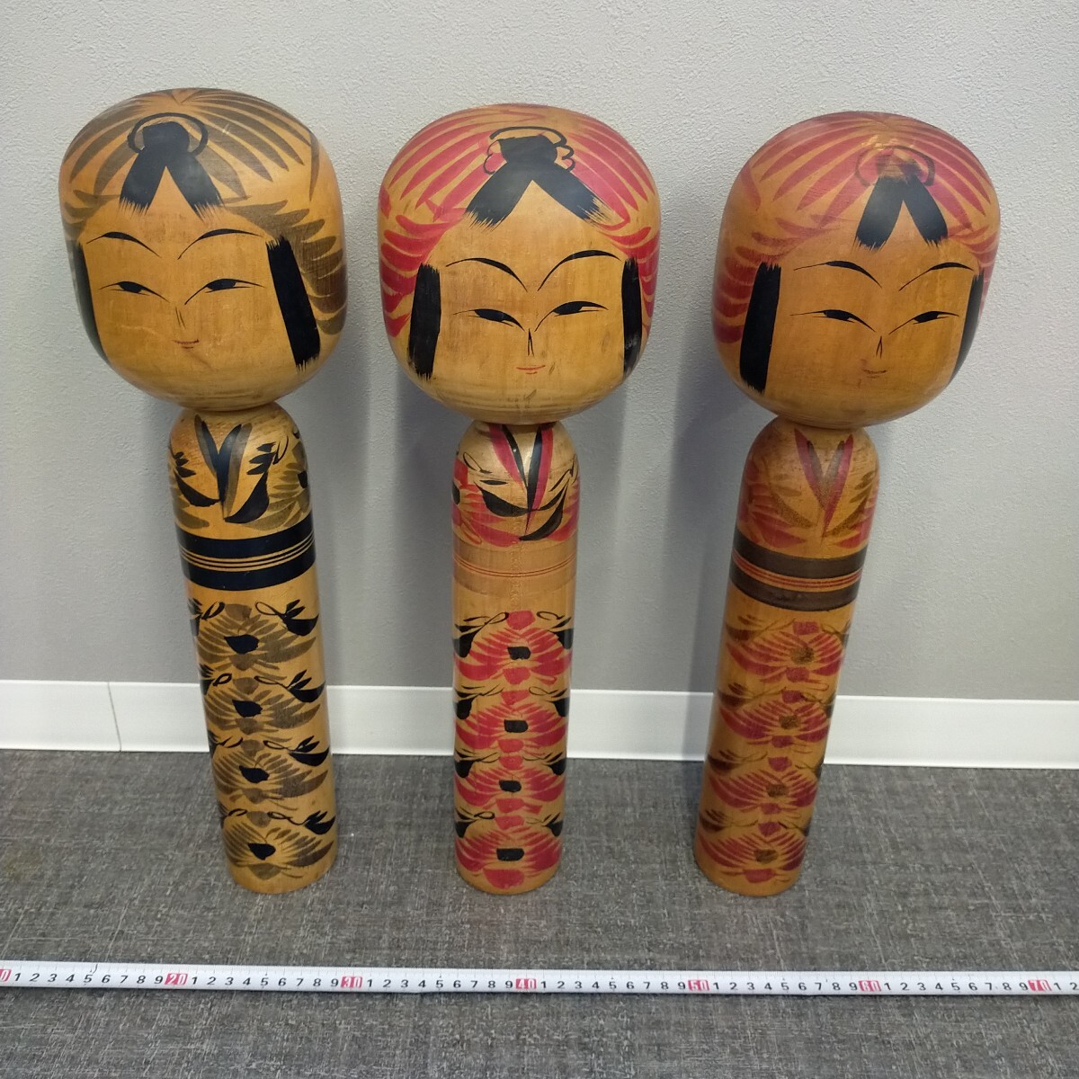 - す2487 こけし 我妻勇 高さ約47cm 大型 3点 まとめ売り 昭和レトロ 日本人形 木製 置物 和風 コケシ 大サイズ