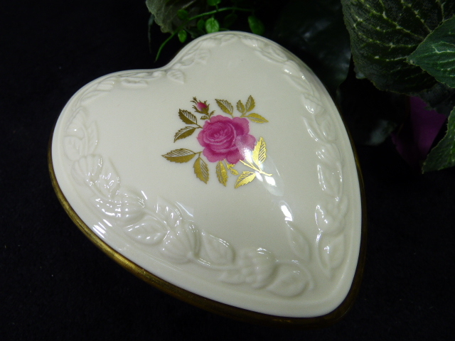 - ほ364.LENOX 小物入れ ハート型 ジュエリーBOX ローズ柄 陶磁器製