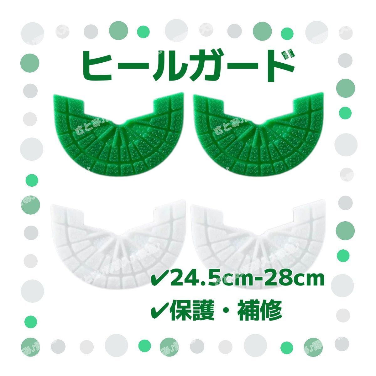 - ヒールガード 4枚セット 2足分 ソールガード スニーカー プロテクター 保護 補修 24.5cm-28cm グリーン ホワイト