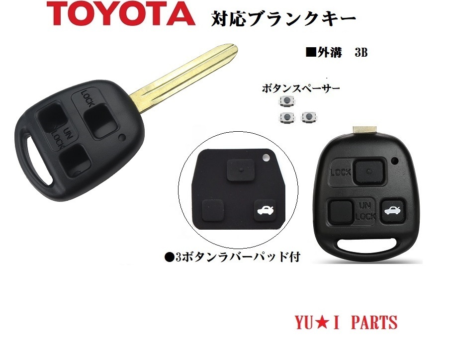 > ■トヨタ ブランクキー外溝3ボタン 補修ボタン付キーレス ランドクルーザー プラド マーク2 クオリス FJクルーザー 100系ハイエース