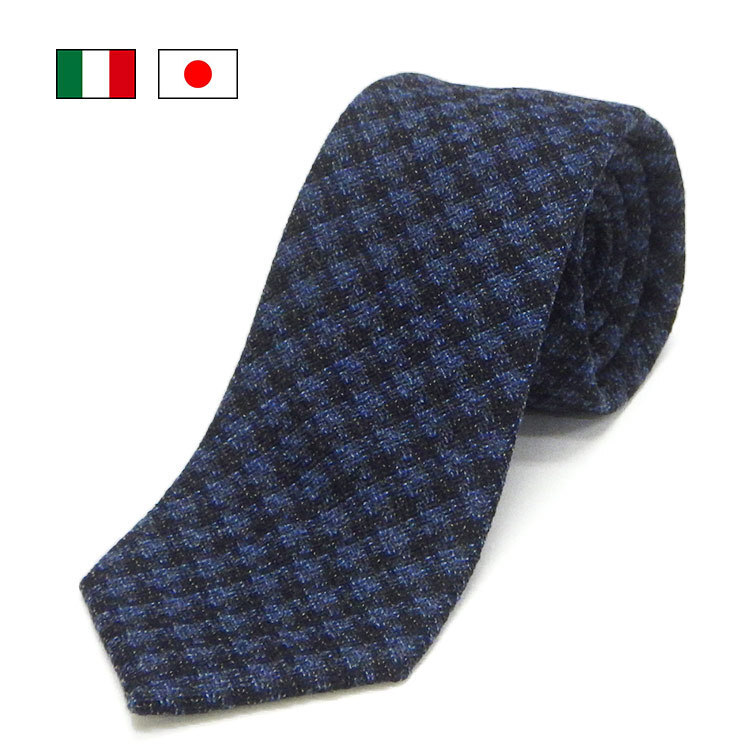 - イタリー生地使用/京都産 ネクタイ ウールタイ 紺系 チェック柄 KYOTO VINTAGE メール便OK KV-Lani04
