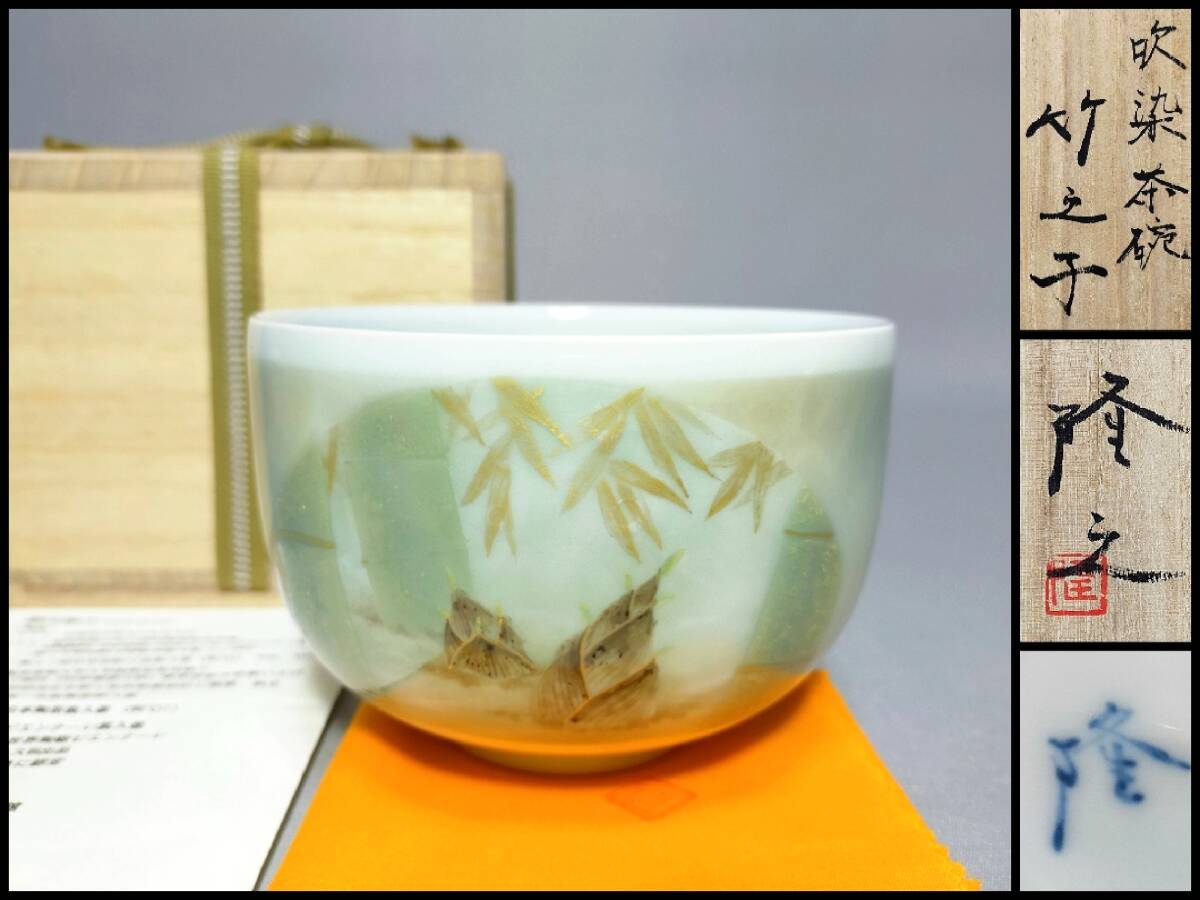 - TS27 茶碗 藤井隆之 造 吹染茶碗 「竹之子」筍 栞・共布・共箱 茶道具