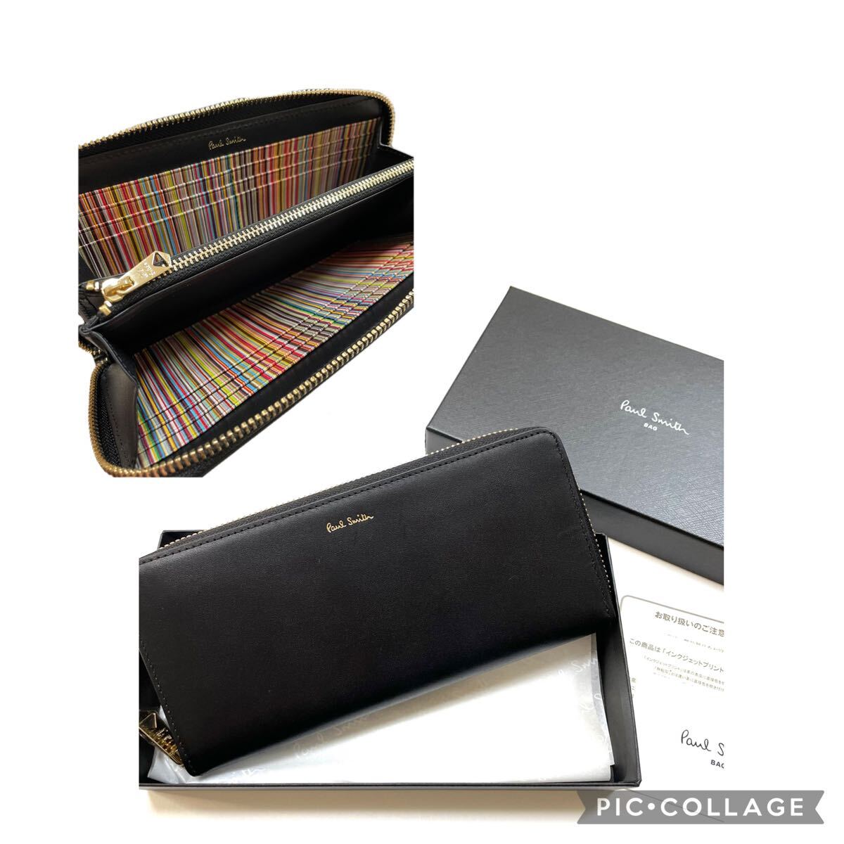 - 新品箱付 ポールスミス 長財布 ラウンドファスナー インテリアマルチストライプ 黒 71310A/412HD
