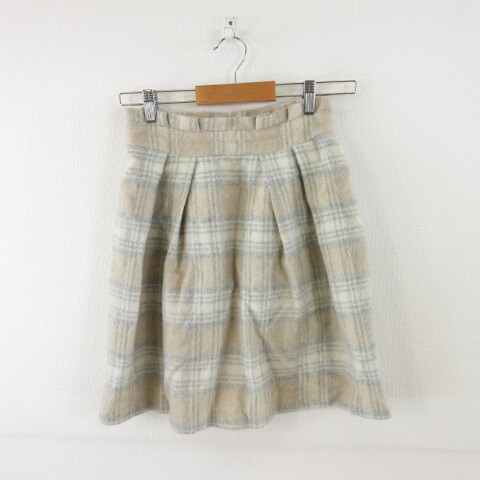 - パターン PATTERN ミニウールスカート チェック グレー ベージュ S *A359 レディース