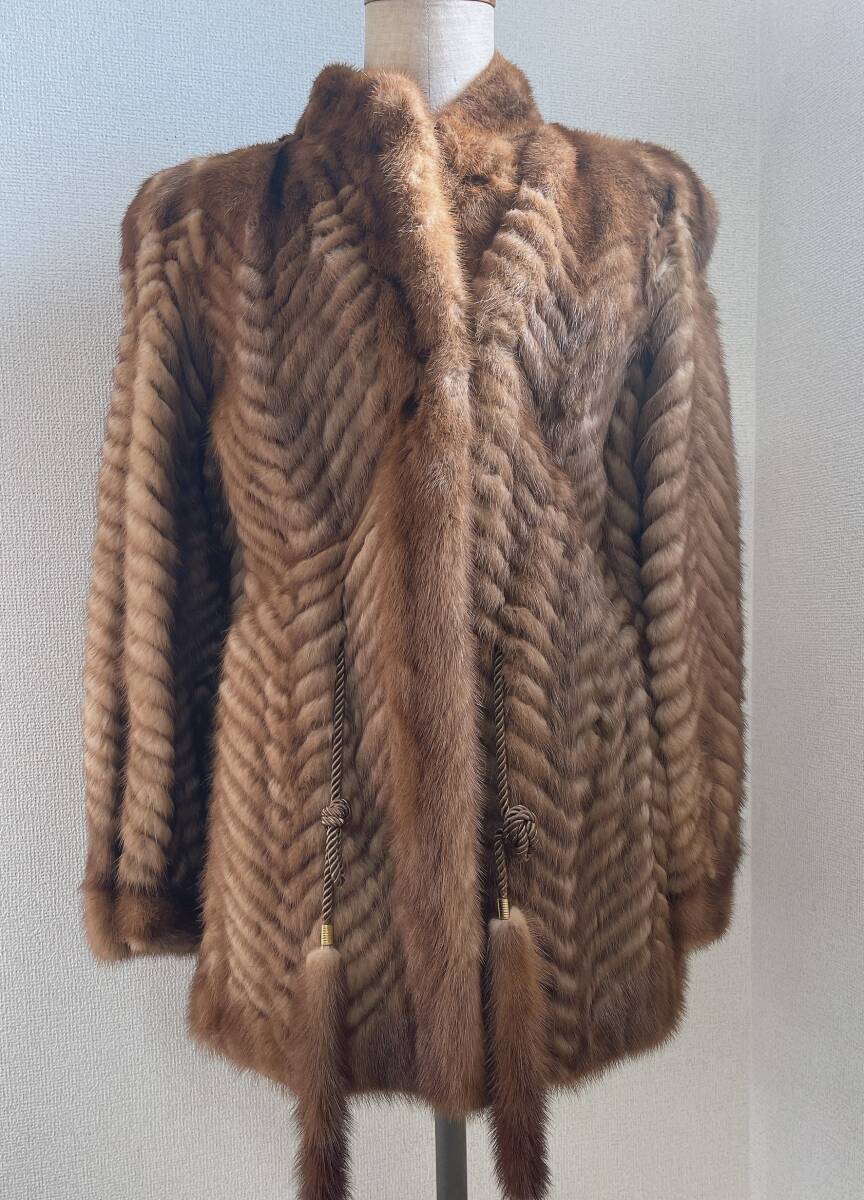 - 【ヘリンボーン 本毛皮コート】ブラウン/アウター/ゴージャス/高級感/レディース/A71-056