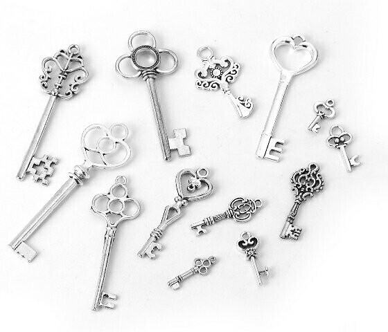 - TT-アンティークキー型(13個入り)メタルチャーム鍵モチーフ ハンドメイドの材料アクセサリーパーツ16mm~62mm他