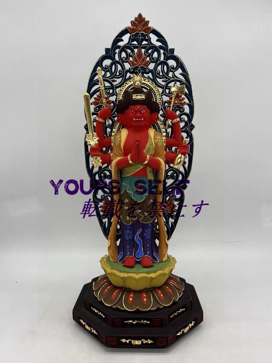 - 仏像 馬頭観音 馬頭明王 立像 桧木彩色 木彫仏像 木彫り 木製 総高約48cm