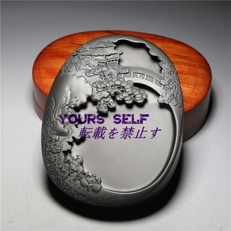 - 彫花硯 天然石 歙州硯 老坑 硯石 楕円形 書道用品 すずり 手のひらサイズ【専用化粧箱入り】サイズ 約17cm×13cm×3cm