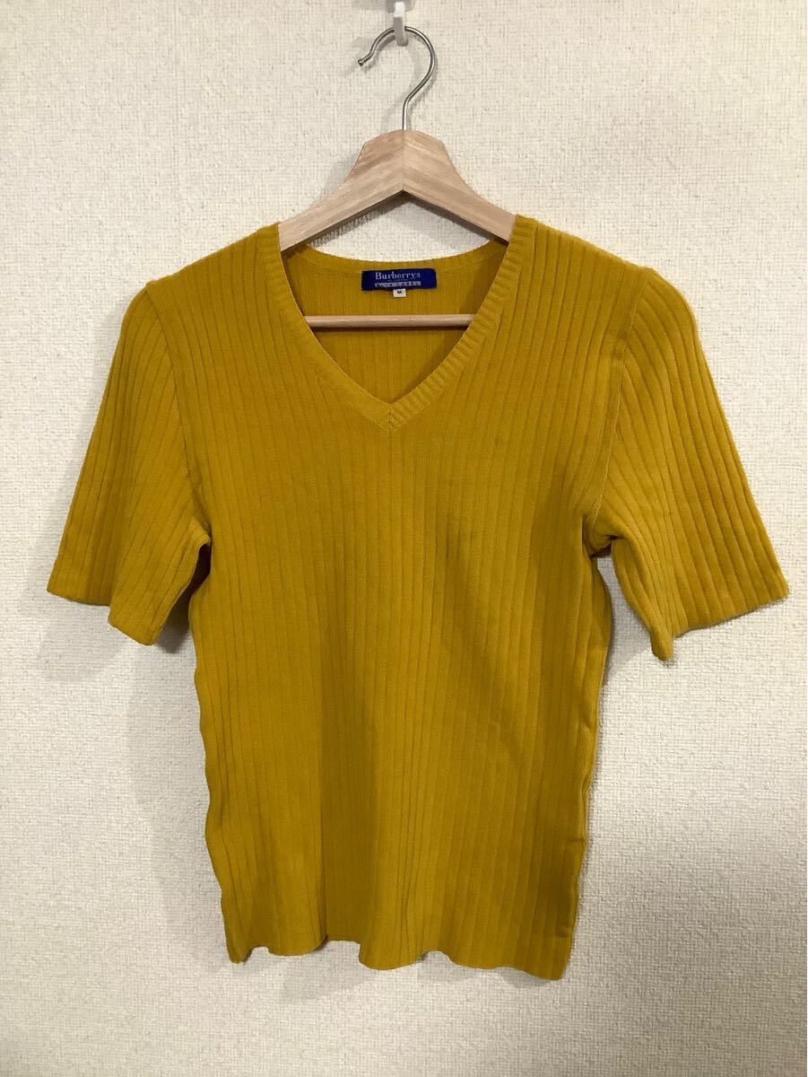 > BURBERRY BLUELABEL バーバリーブルーレーベル リブ編む 半袖ニット トップス イエロー ハイブランド レディース 古着 M