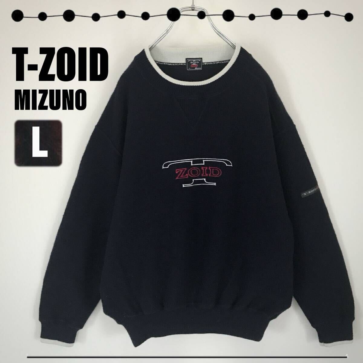 - T-ZOID MIZUNO★ミズノゴルフ★90sスタイル★レトロなウール混パイルスウェット★Vガゼット★刺繍ロゴ★ライン入リブ★メンズL 2309S097