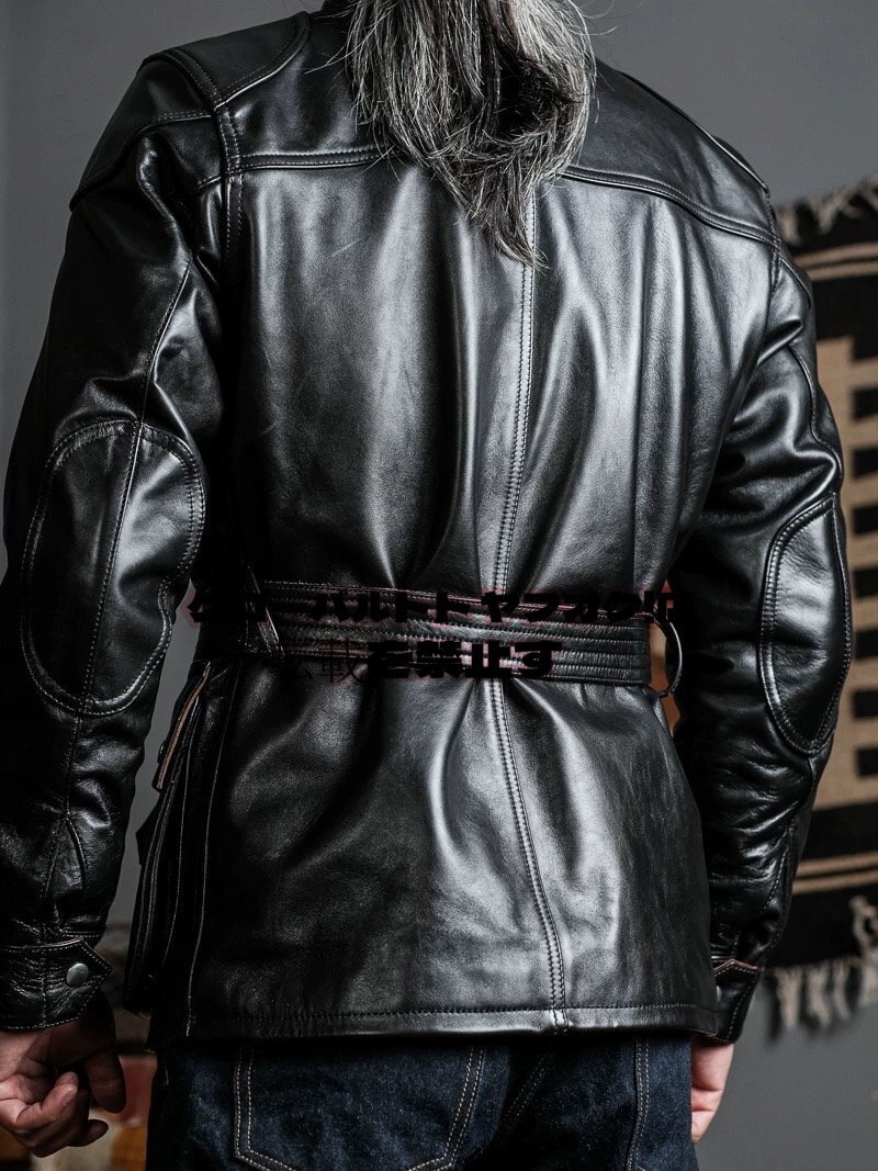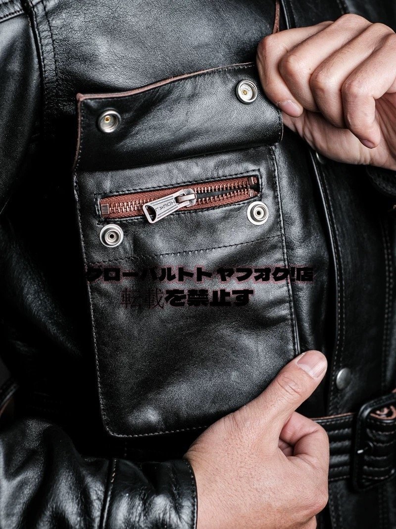 > 極美品★ ダブルライダースレザージャケット レザージャケットカーコート レザー 茶芯 馬革 S