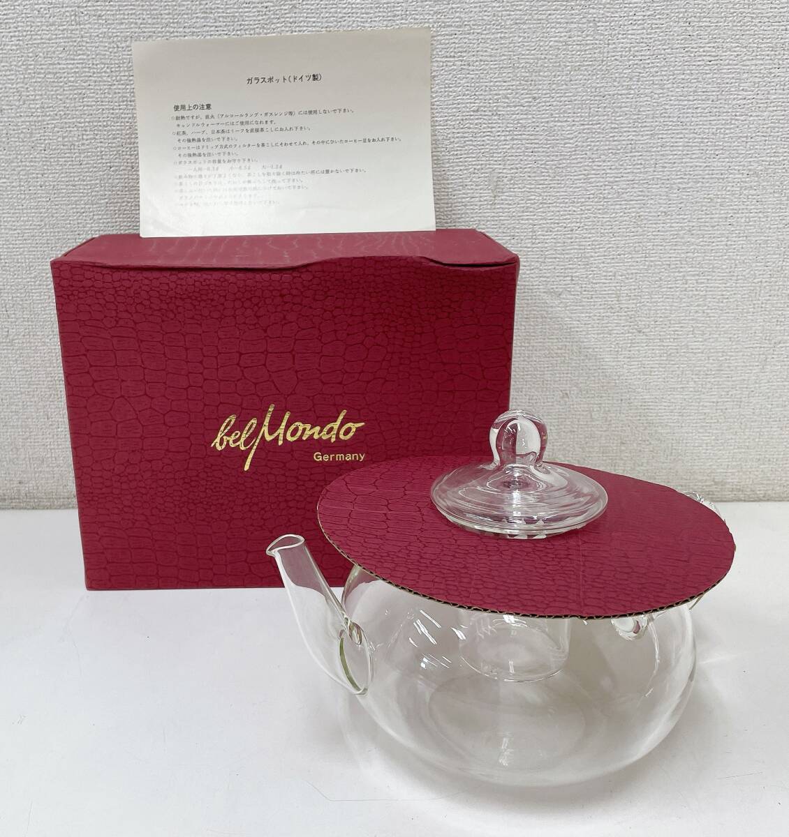 - 【belMondo ベルモンド社 ティーポット 大 ドイツ製】ガラスポット/直径約17㎝/未使用/箱入り/A611-285