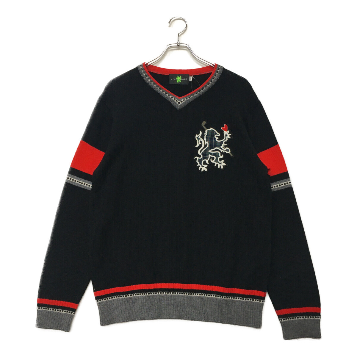 > coco 中古【値下げ】ビバハート VIVA HEART メンズ ニット 52(LL) 黒×赤×グレー カラーブロック ワッペン 106653