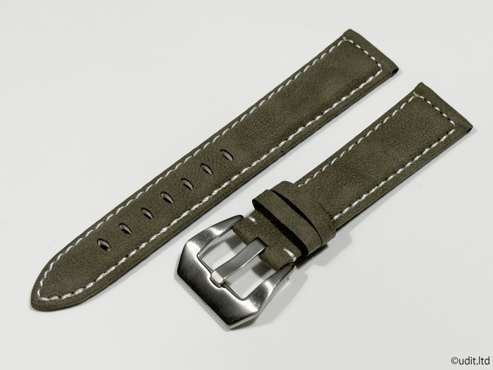 - ラグ幅20mm 腕時計用レザーベルト アースカラー グリーン 時計用バンド ヘキサゴン尾錠 LB106