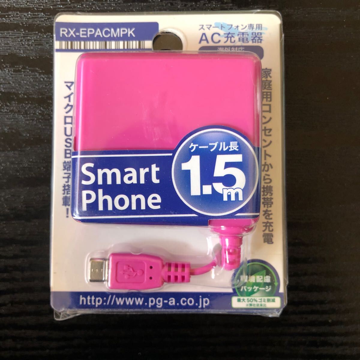 - 新品・未使用★スマートフォン専用 AC充電器(ピンク) 海外対応★マイクロUSB 1.5m