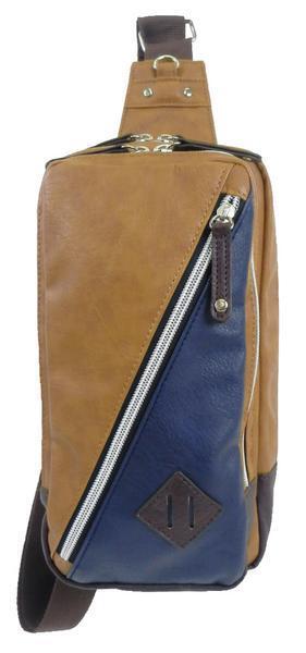 - 新品◆斜め配色合皮ボディバッグ/キャメル●