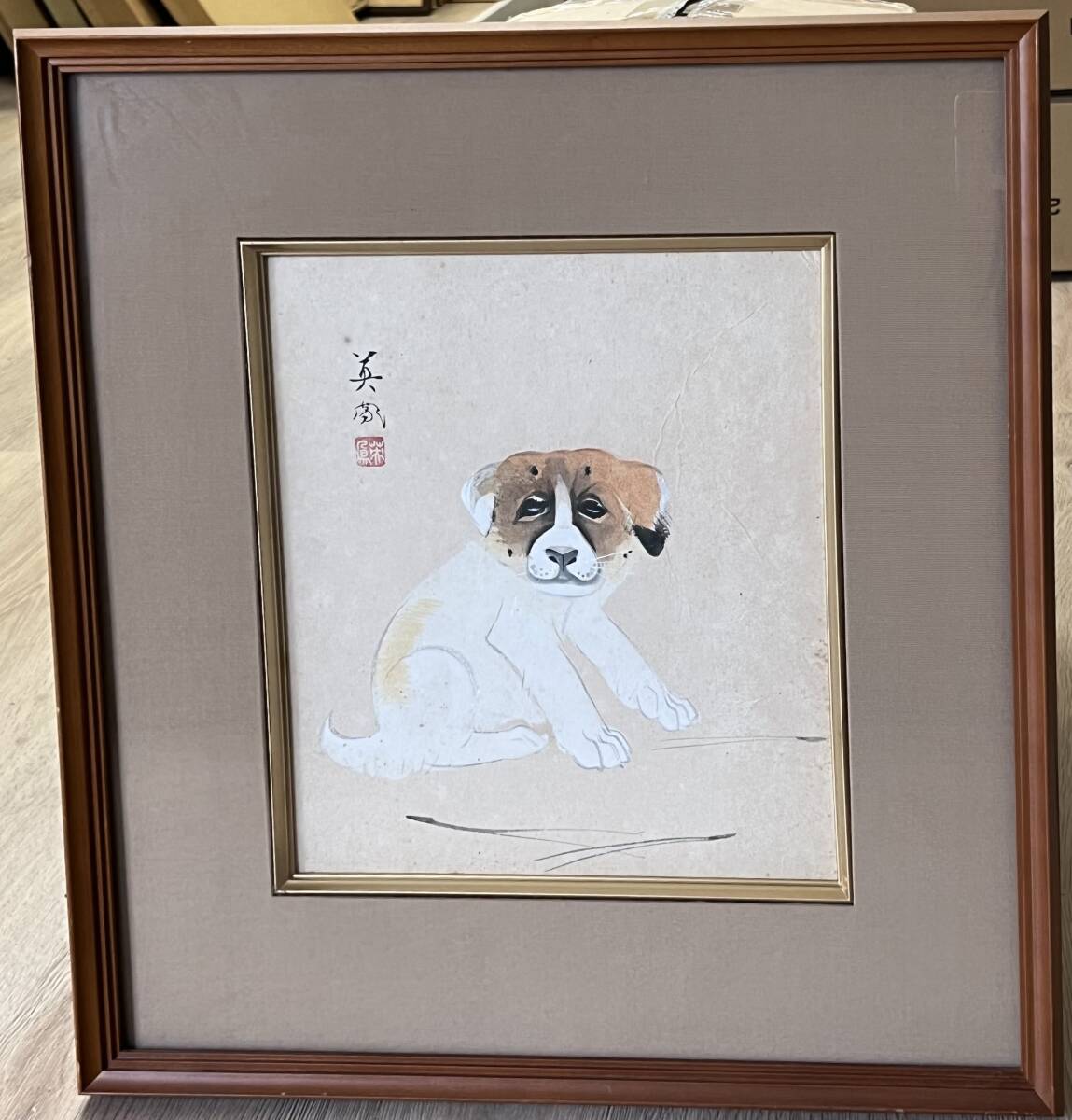 - 【模写】 日本画 戌の図(約縦45㎝×横42㎝×厚み3.5㎝