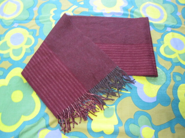 > 新品/タグ付 DKNY ダナキャランニューヨーク カシミア100 マフラー 2色ダークパープル系 裏/グレー系