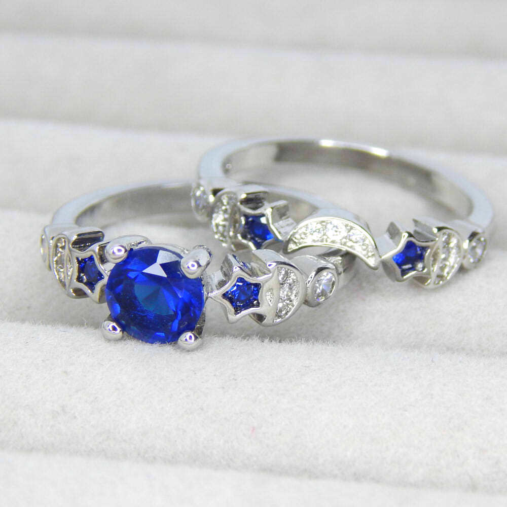 - 再入荷★新品★送料無料 豪華 ジルコニア 10号 星&月 CZサファイアダイヤモンドリング シルバー925 プラチナ仕上 刻印有 レディース