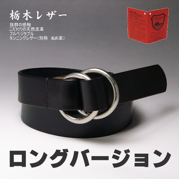 > ベルト 栃木レザー 40mm メンズ 本革 ダブルリング バックル 幅40mm ロング ブラック 黒 新品 ヌメ革