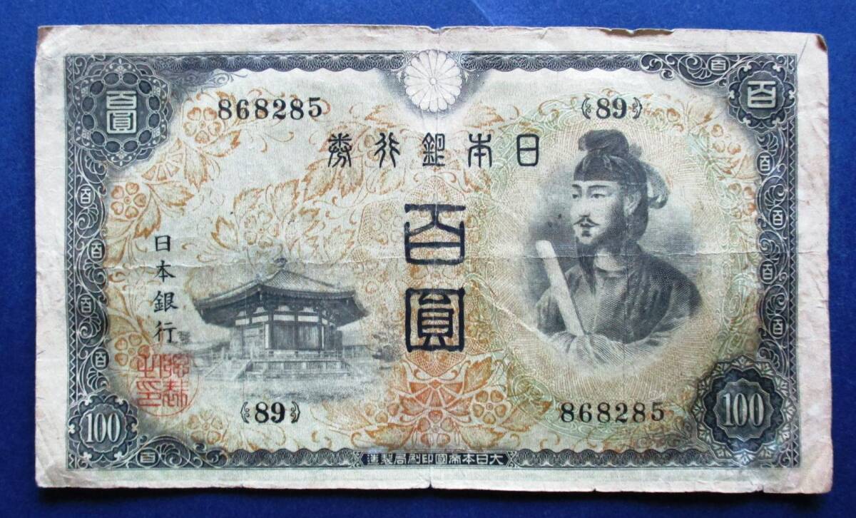 - 日本紙幣 不換紙幣100円 2次100円紙幣 89組868285 AB14 画像参照してください。