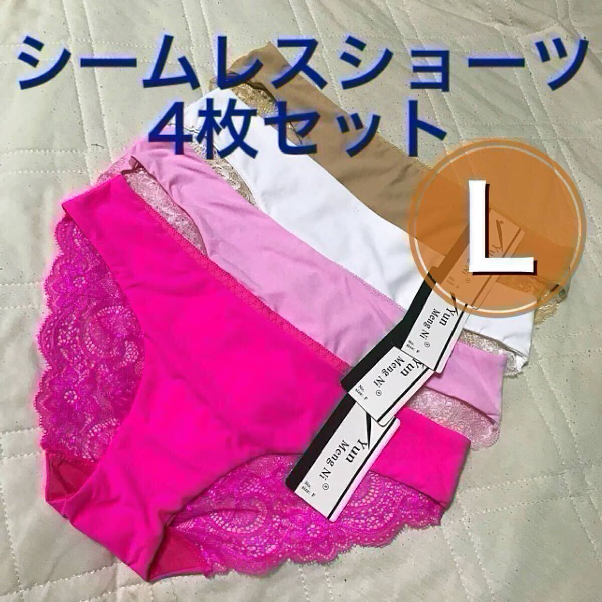 > シームレス ショーツ 4枚 セット Lサイズ レース ベージュ 肌色 ホワイト 白 ピンク レディース 下着 まとめ売り 花柄 総レース 豹柄