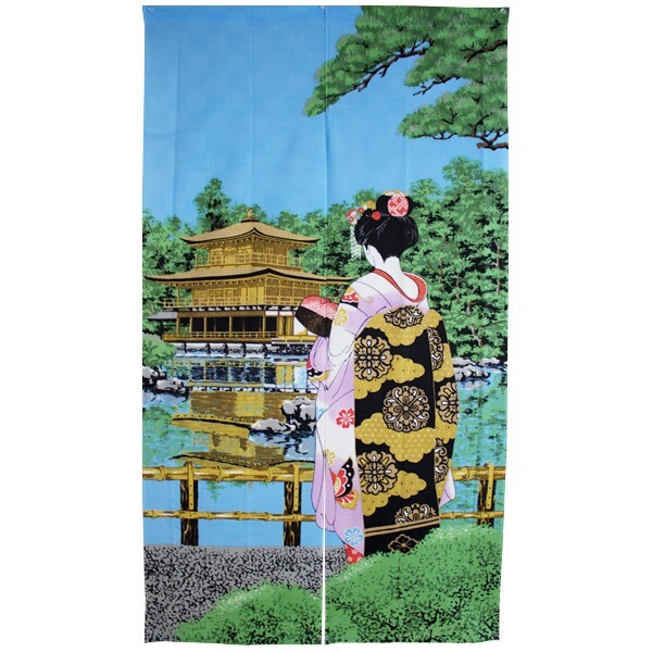- 創作和風のれんロング85センチ×150センチ舞妓金閣寺CSM-08-2409-14221-naru