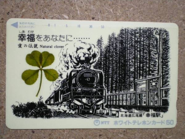 - tetu・鉄道 幸福駅 SL 四つ葉のクローバー入り テレカ