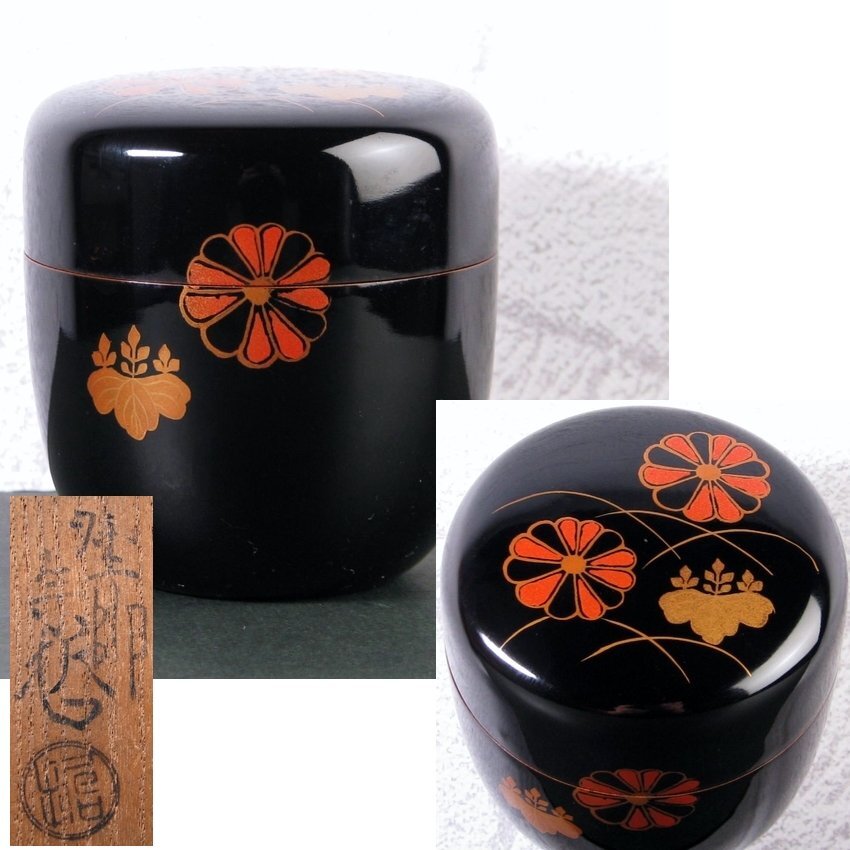 - 時代 中村宗哲作 中棗 桐に菊の図 共箱 茶道具 千家十職/25a034