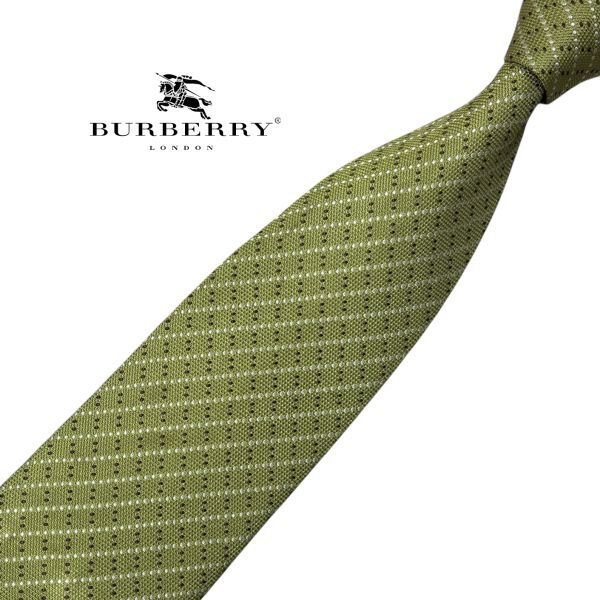 > ★ストライプ&ドット柄★高級ネクタイ★Burberry LONDON オリーブ系 ロゴホース刺繍 バーバリー ネコポス可 USEDプレス済み t1231