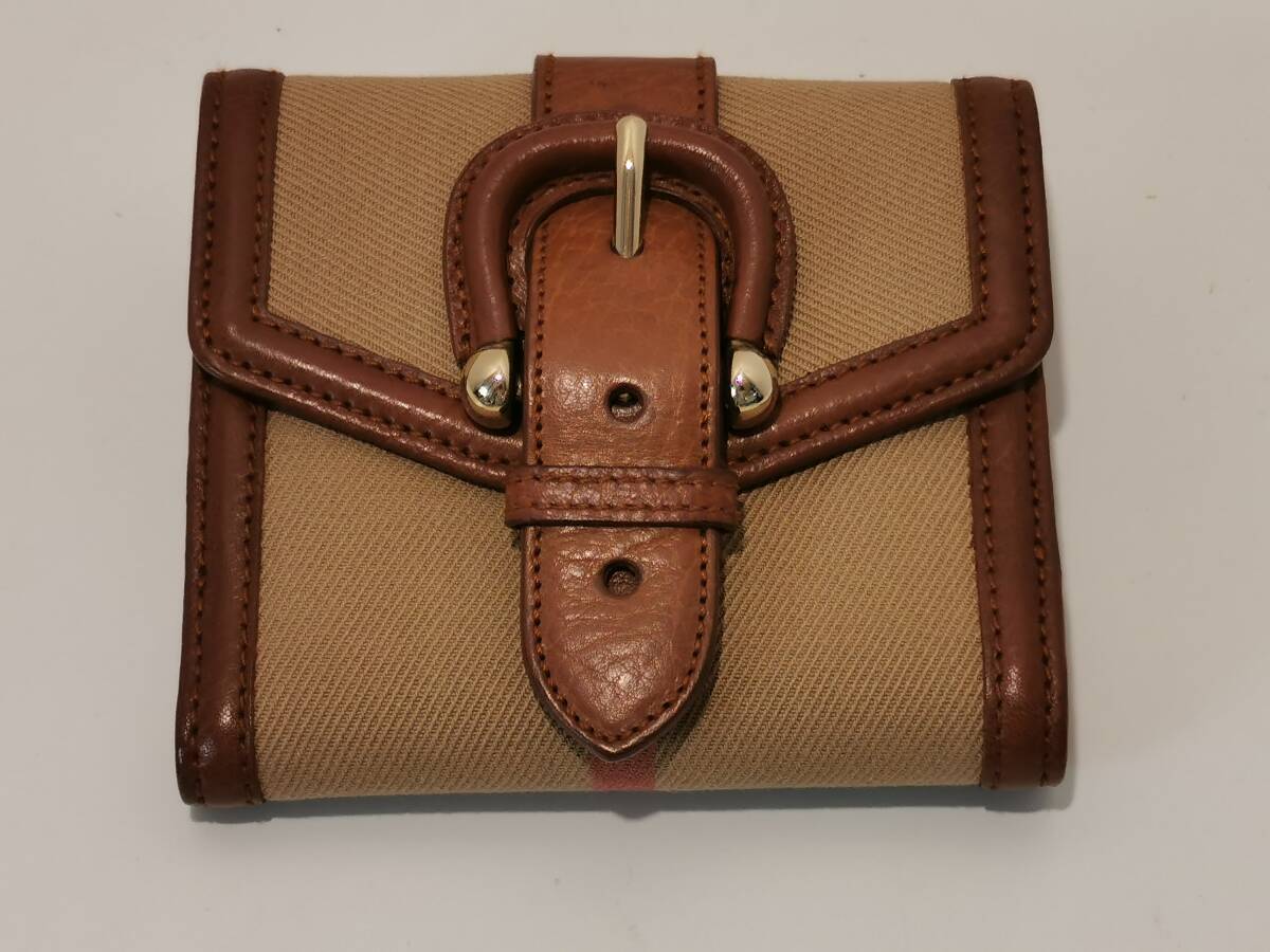 - 170115S-0123T4□バーバリー 二つ折り財布 ベルトデザイン□キャンバス ノバチェック 美品 ブラウンレザー BURBERRY