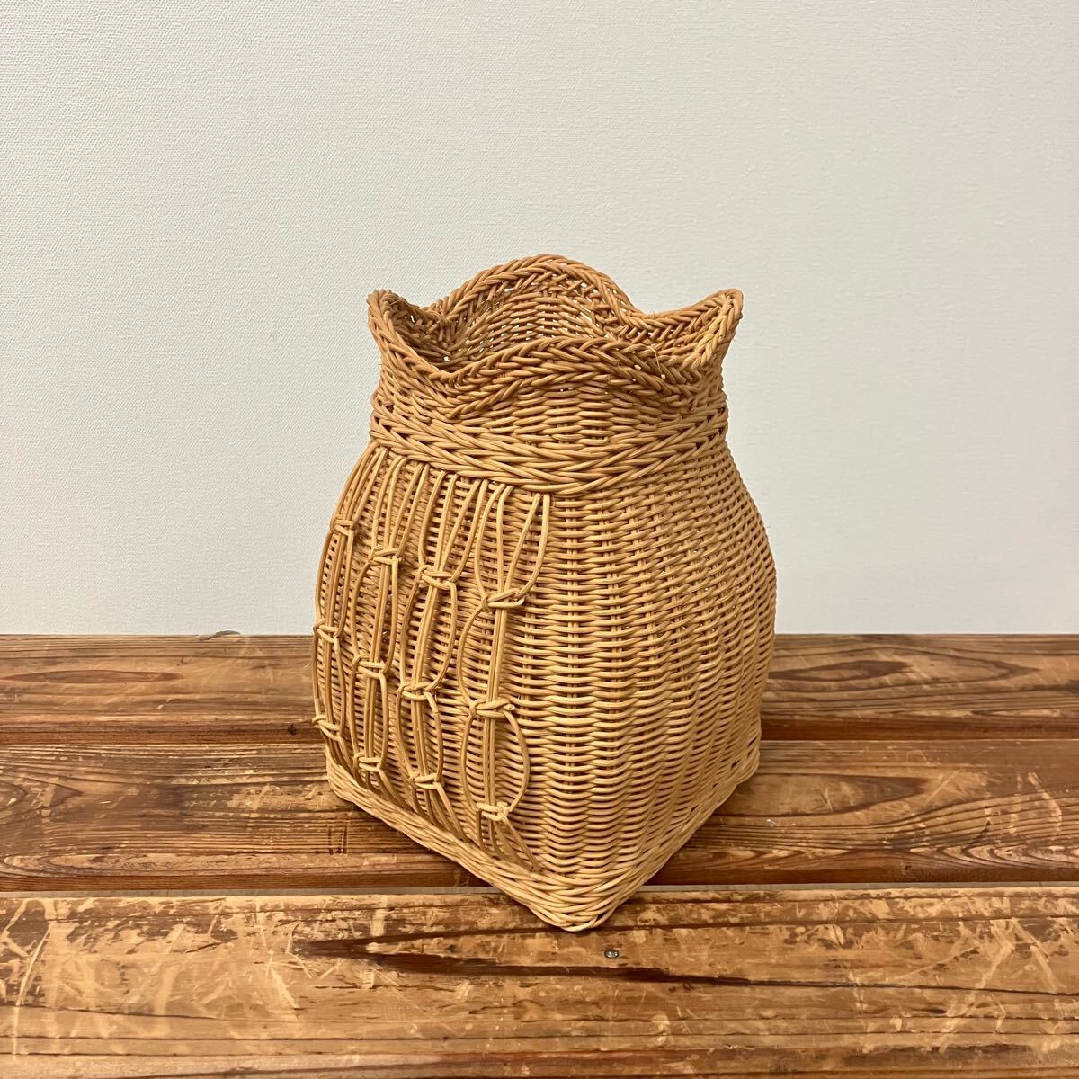 - ラタン 藤 花瓶カバー フラワーベース ナチュラル アジアン レトロ ビンテージ 古道具 インテリア 管L-92