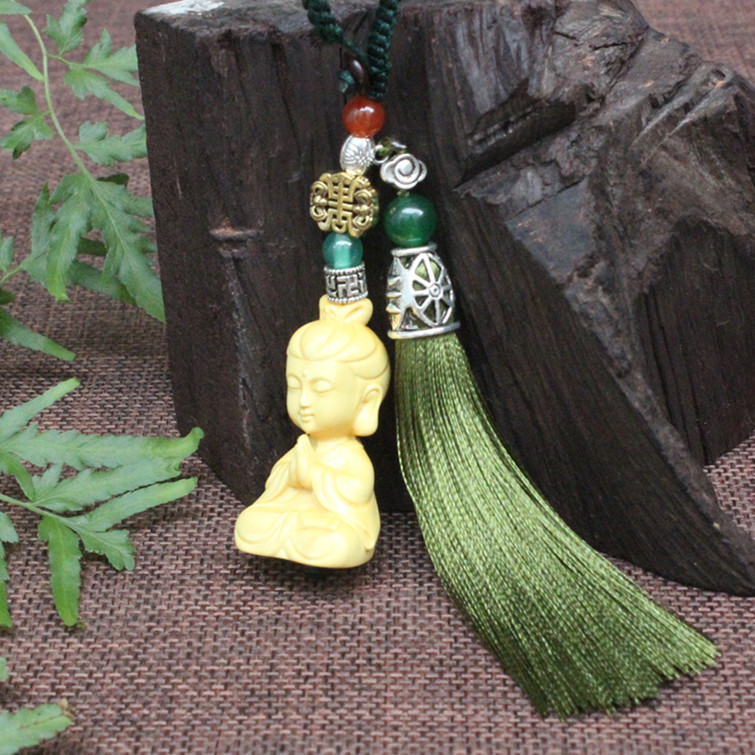 - 【柘植 木彫 根付】 ◆観音様◆ ナチュラル/天然木製/手作り/ハンドメイド/細工彫刻/キーホルダー/ストラップ/プレゼント/開運風水厄除け