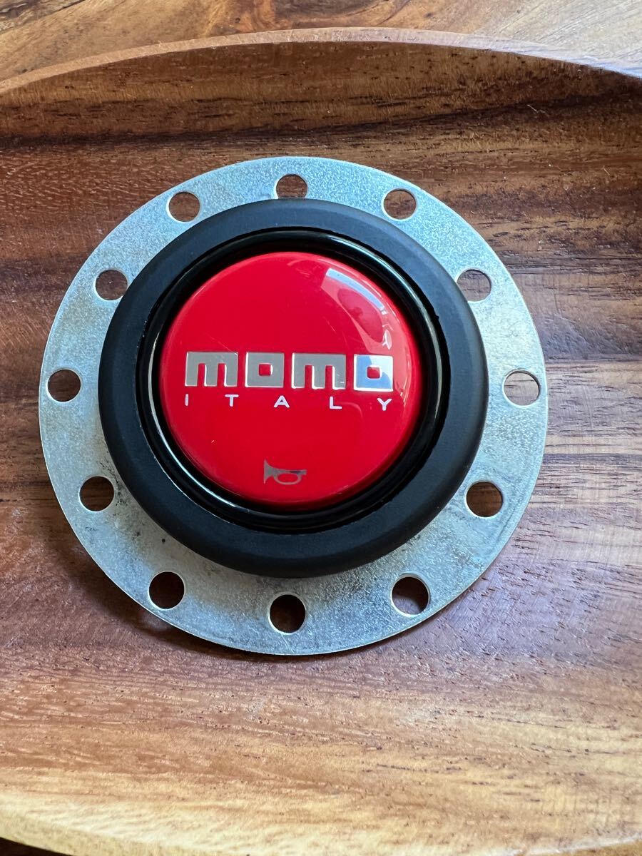- MOMO 非売品 ホーンボタン レッド ITALY 販売終了品 アースリング付(ホーンボタン取付リング/リテーナーリング/ナルディ/パーソナル利用可)