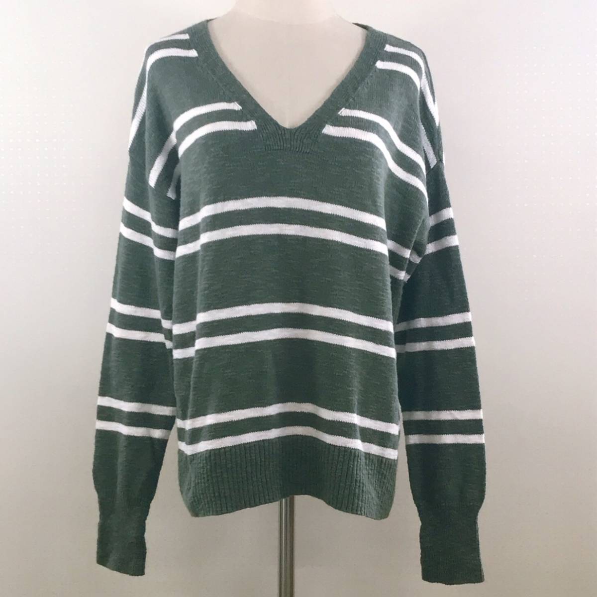 - YX137 美品 GAP ギャップ レディース トップス セーター 長袖 Vネック M グリーンホワイト ボーダー 綿100% あたたか カジュアル おしゃれ