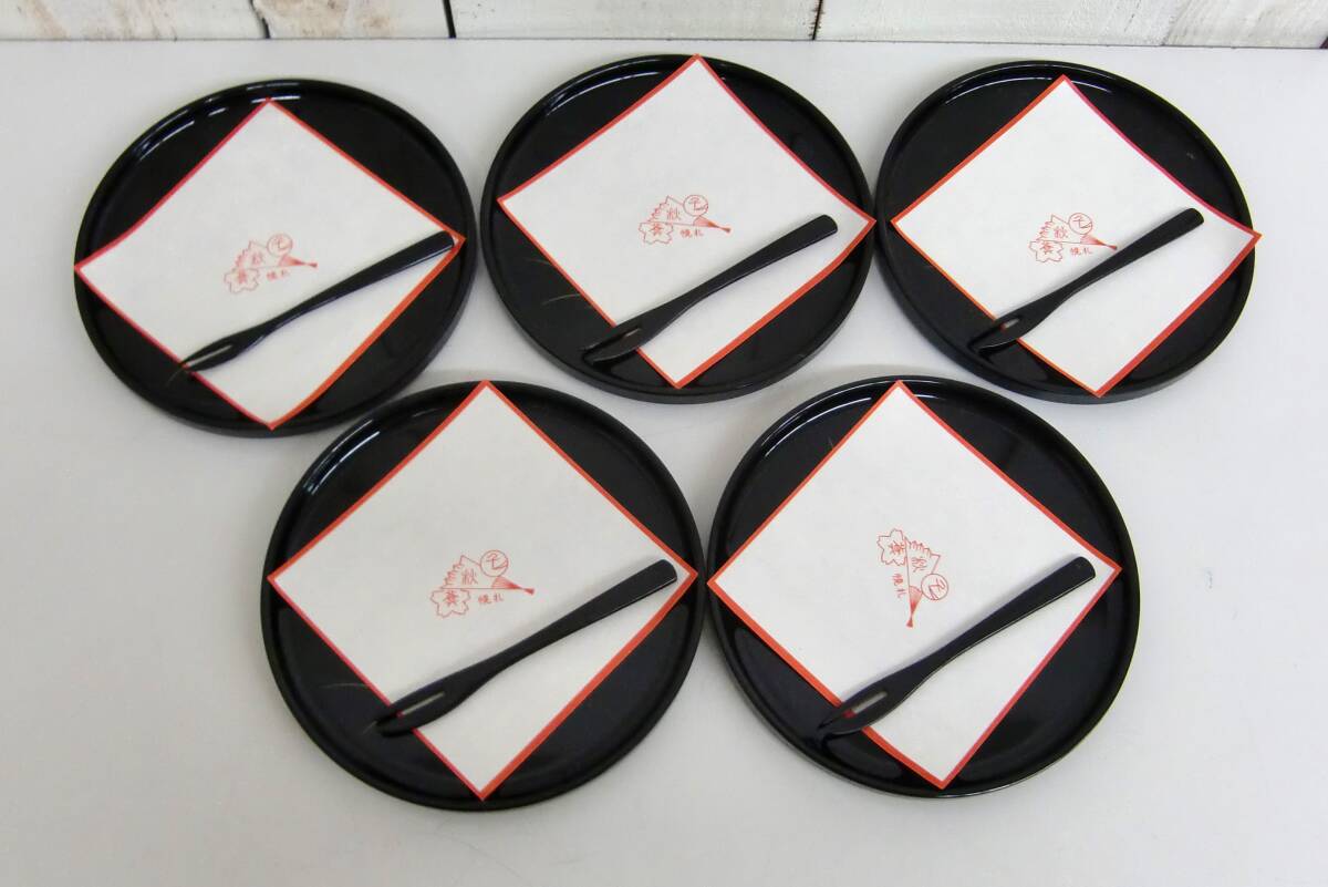 - *伝統工芸 工芸品 工芸美術 *白峰漆工房 *銘々皿 5客 *敷き紙 9枚 *フォーク 5点 *高級塗物 天然木加工品 *元箱付き