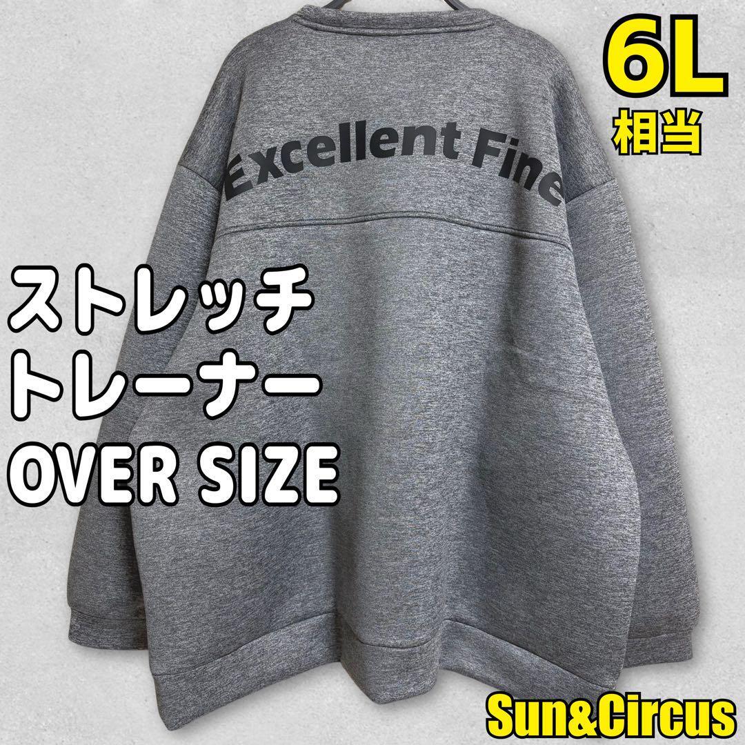 - メンズ大きいサイズ6L相当ストレッチ ダンボール クルーネック トレーナー GY