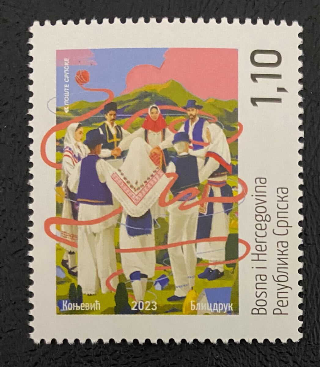 - ボスニア・ヘルツェゴビナ セルビア人地区 コザラ・コロ 民族舞踏 ユネスコ文化遺産 北西部地域クネシュポリェ地方の踊り 1種完 未使用 NH