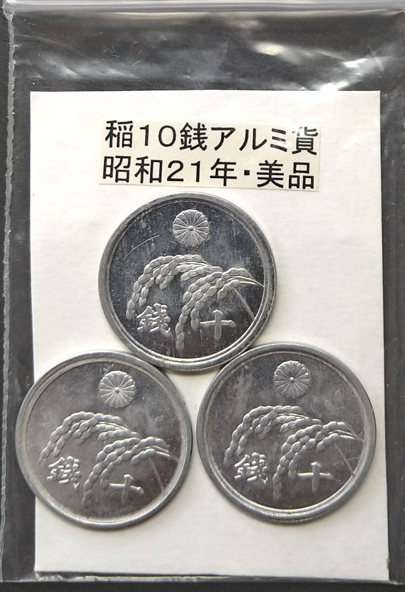- 稲10銭アルミ貨・昭和21年(3枚)