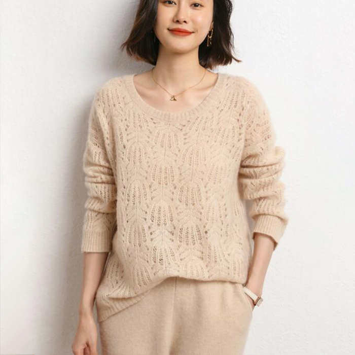 > セーター カシミヤ プルオーバーセーター カシミア 秋 冬 トップス 透かし編み クルーネック レディースプルオーバー Zcas0069 ベージュ