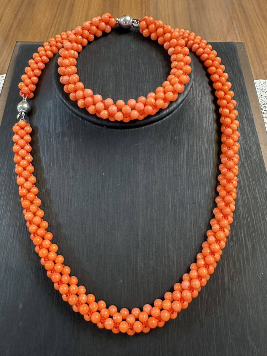 - V-831 オレンジ系 珊瑚 サンゴ ネックレス ブレスレット 2点セット