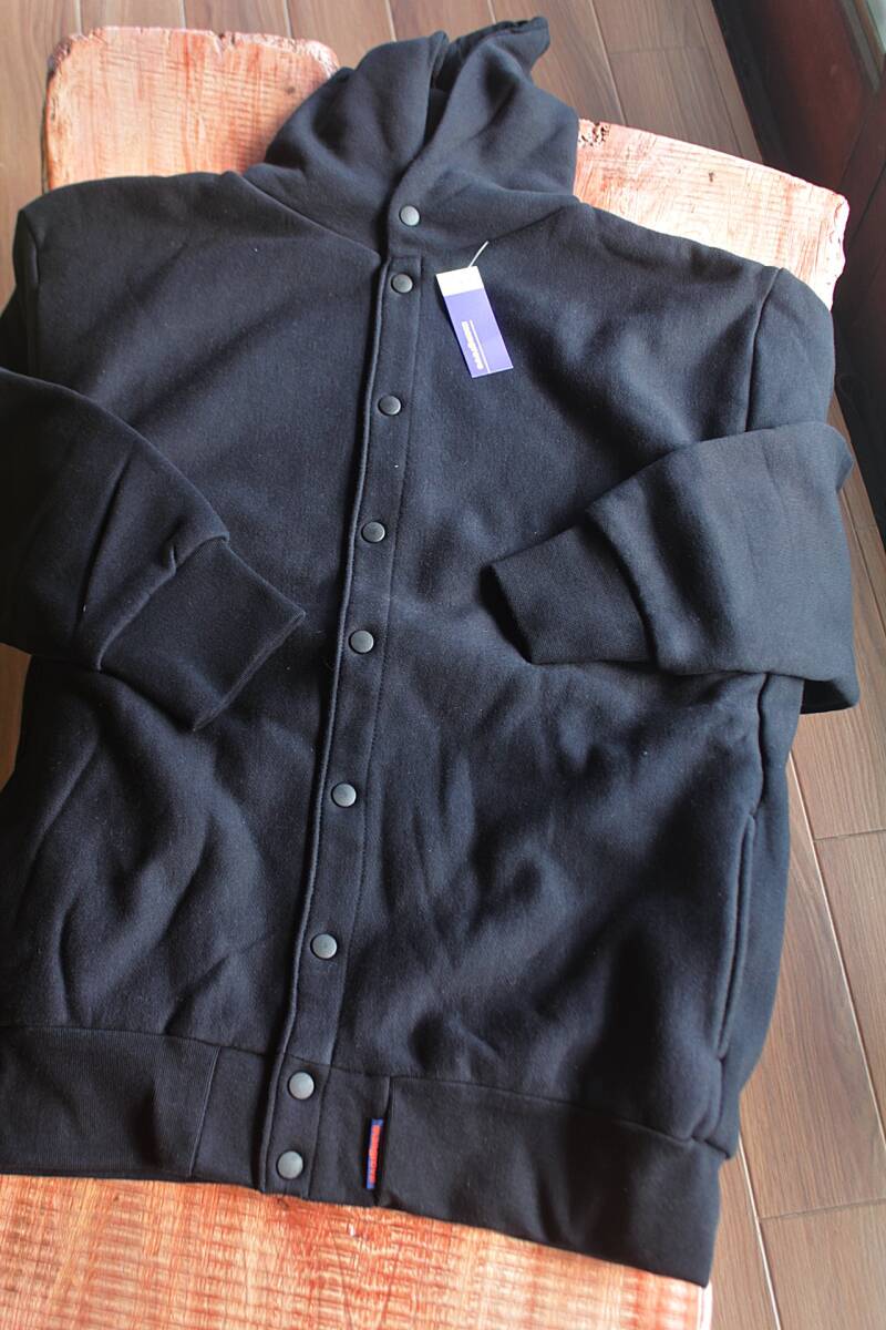 > MANGROVE(マングローブ)★ リバーシブル・スナップスウェットパーカー新XLブラック★裏サーマル★リバースウィーブ
