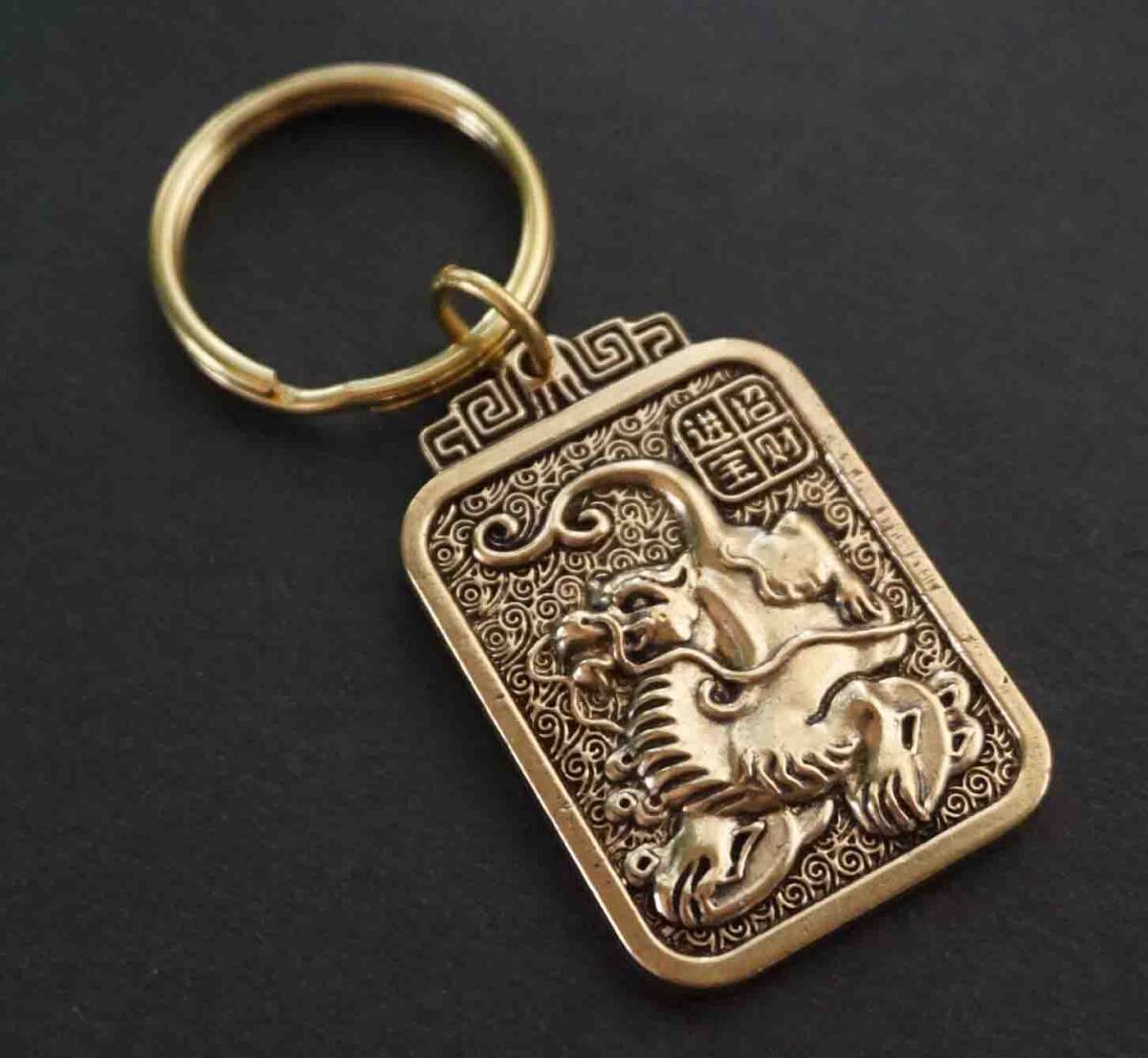 - 《KEY骨董お守り風「古代睚眦龍」》縁起物・金運 古銅風 新品■『龍 ドラゴン 神獣・ 貔貅』金属キーホルダー■『開運 祈願 ラッキー』