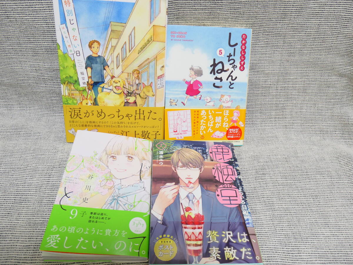 - 4冊「特別じゃない日」「はじめてのひと」「よついろ日和」「しーちゃんとねこ5」ほっこり出来るシリーズです、新しく出たもの、全巻美本