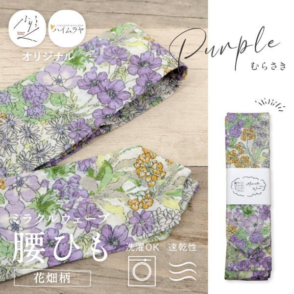 - 【 ミラクルウェーブ腰ひも 花畑柄】【単品】『パープル』オリジナル商品 コットン 日本製 綿100% 広幅 速乾 洗濯OK 腰ひも