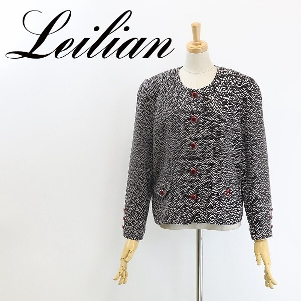 - ◆Leilian レリアン 総柄 コットン ノーカラー ジャケット 9