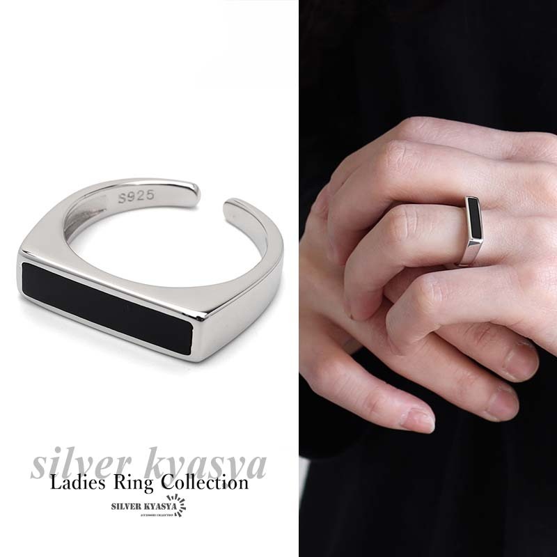 - シルバー925 印台リング スタンプリング スクエアリング 細身リング オープンリング レディース 指輪 金属アレルギー対応