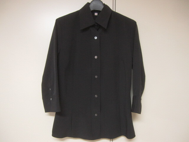 > ユニクロ UNIQLO シャツ 黒 ブラック ストレッチ 七分袖 2315-001 レディース