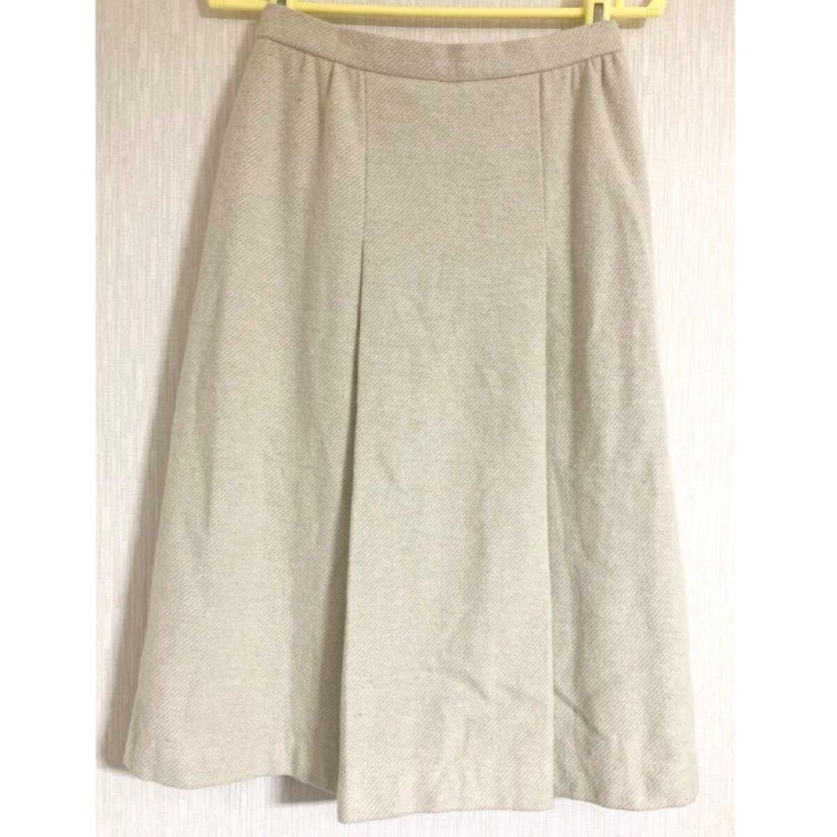 - 匿名配送 ウールひざ丈スカート 無地オフホワイト ホワイトベージュ グレージュ タックスカート プリーツスカート 秋冬 防寒