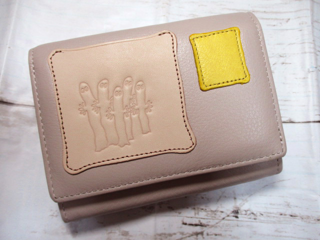 > 財布 二つ折り かぶせ レディース ムーミン MOOMIN キャラクター 本革 牛革 パッチワーク パステルカラー 最新作 第2弾 ニョロニョロ